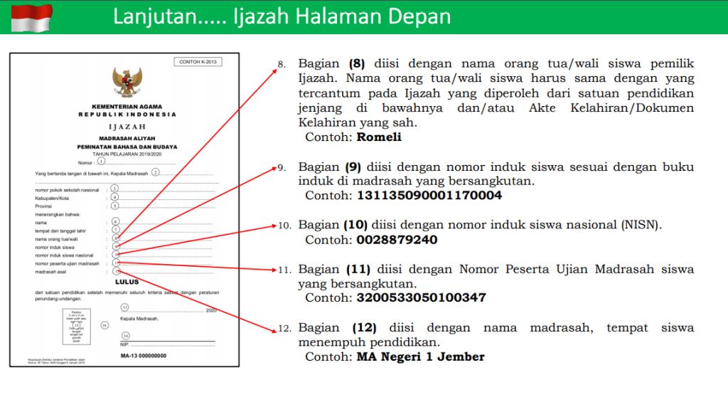 Pedoman Penulisan Blangko Ijazah Madrasah MI MTs dan MA Tahun 2020